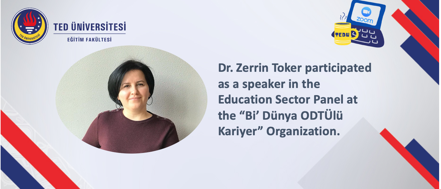 Bölüm Başkanımız Dr. Zerrin Toker, 20 Şubat 2021 tarihinde ODTÜ öğrenci ve mezunlarının birbirleri ile tanışabilecekleri, iletişim kurabilecekleri, kariyerleri, meslekleri, çalıştıkları sektörlerle ile ilgili bilgi ve deneyim paylaşabilecekleri, kariyerlerine yön vermek için merak ettiklerini sorabilecekleri, ilham ve yönlendirme alabilecekleri çevrimiçi bir buluşma ortamı olarak tasarlanan “Bi’ Dünya ODTÜlü Kariyer” buluşmasında Eğitim Sektörü Panelinde konuşmacı olarak yer aldı. Dr. Toker paneldeki konuşmasında öğretmenlikten başlayarak kitap yazarlığı, profesyonel gelişim koordinatörlüğü, yöneticilik ve öğretim üyeliği görevlerindeki deneyimlerini öğretmen adayları ile paylaşarak kariyer hedefleri ve alternatifler konusunda önerilerde bulundu.