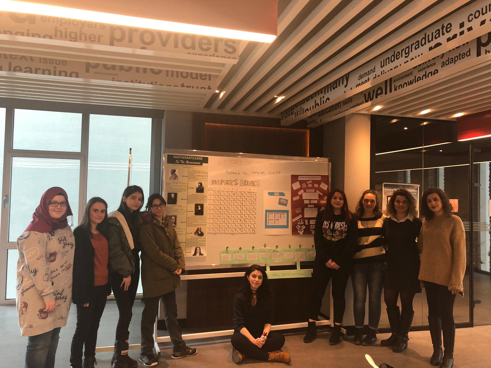 Dr. Nihan Uçar Sarımanoğlu’nun verdiği Matematik Tarihi dersinde Matematik Eğitimi Anabilim Dalı öğrencileri final projeleri için matematik tarihinden kesitleri anlatmayı amaçlayan posterler, tarih şeridi ve oyunlar tasarladı. Öğrenciler çalışmalarını sınıf ortamında sunarak arkadaşlarını ve öğretmenlerini bilgilendirdiler. Matematik Tarihi dersinin amacı farklı zaman dilimlerinde ve farklı kültürlerde matematiksel kavramların köken ve gelişim süreçlerinin nasıl olduğu hakkında öğrencilerin derinlemesine bir anlayış kazanmalarını sağlamak ve onlara matematiğin sosyal, felsefi, dini ve bilimsel gelişmelerdeki rolü hakkında bir bakış açısı kazandırmaktır.