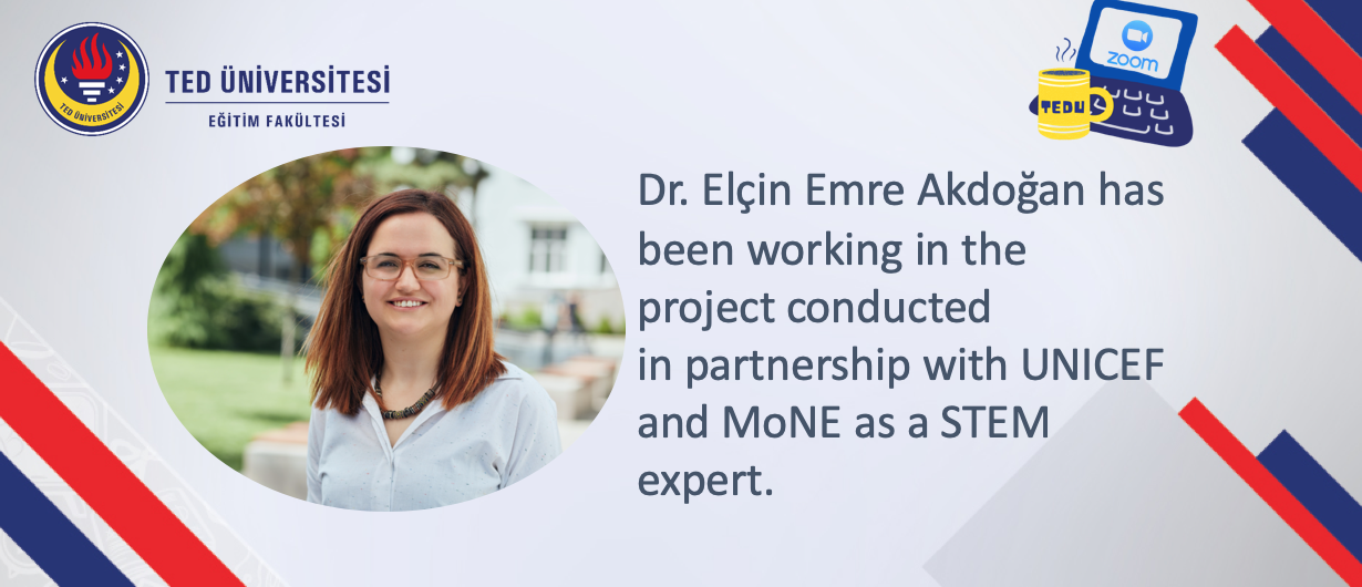 Dr. Elçin Emre Akdoğan has been working in the project conducted in partnership with UNICEF and MoNE (Ministry of National Education) as a STEM (in mathematics) expert. The project has titled as "Design Skill Labs Material and Content Development(Ref: EDU/TURA/2019-13 (LRPS-2019- 9153504).