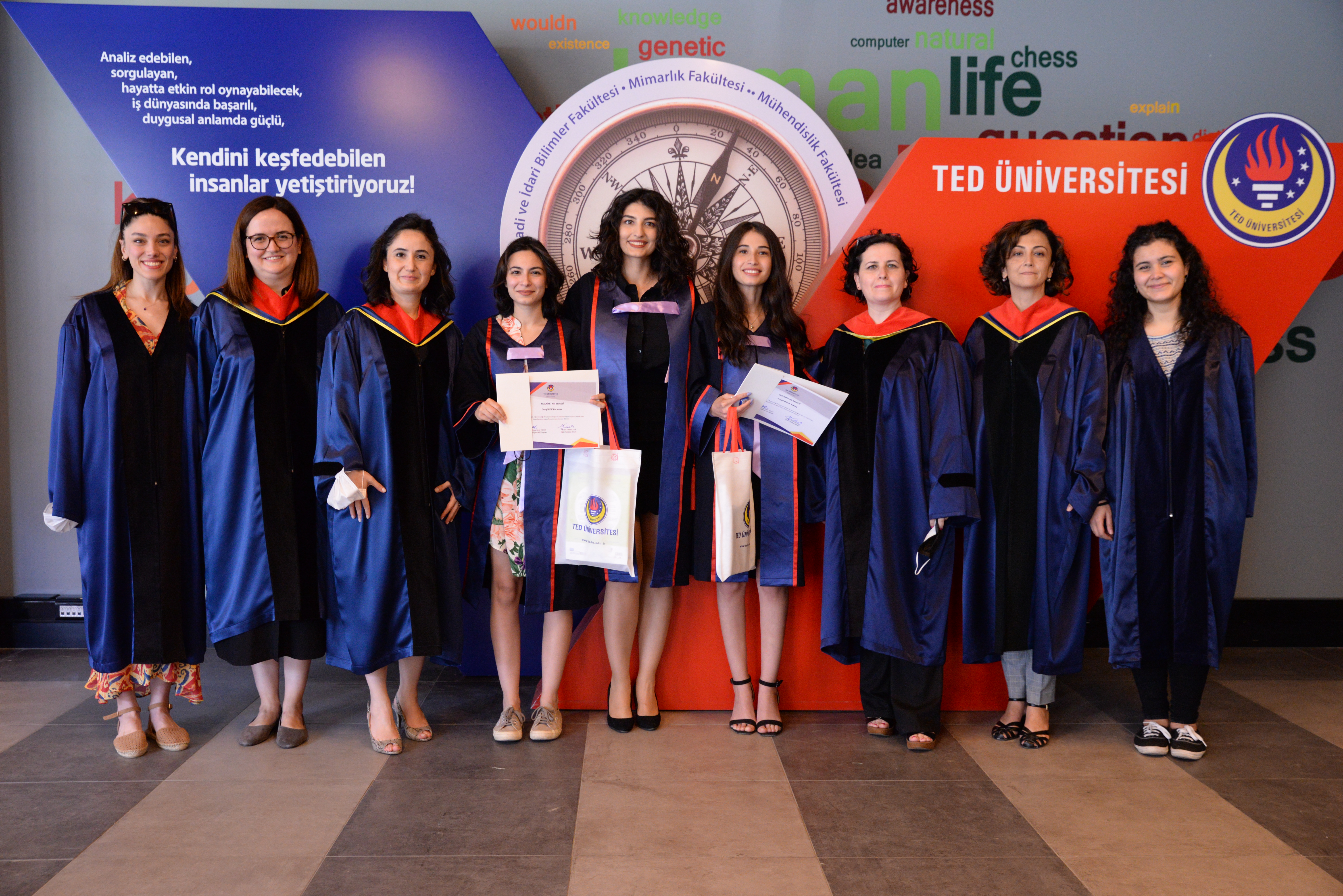 On Friday, July 9, 2021, the first graduates of the Elementary Mathematics Education Program took their oaths.The graduation celebration held with the participation of The Dean of Faculty of education, Prof. Dr. Yüksel Kavak and the faculty members of the department, TED Badges were presented to our graduate students. After the swearing-in ceremony, our graduates cut a cake and took a photo shoot.