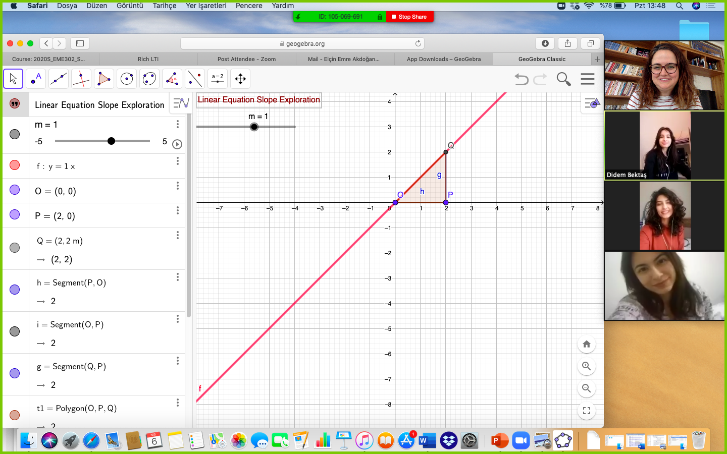 As part of EME 302 - Technology in Mathematics Education and MATE 104 - Calculus 2 course offered by Dr. Elçin Emre Akdoğan who is the faculty lecturer of Mathematics Education Program at the Department of Mathematics and Science Education, activities were made with the GeoGebra program.